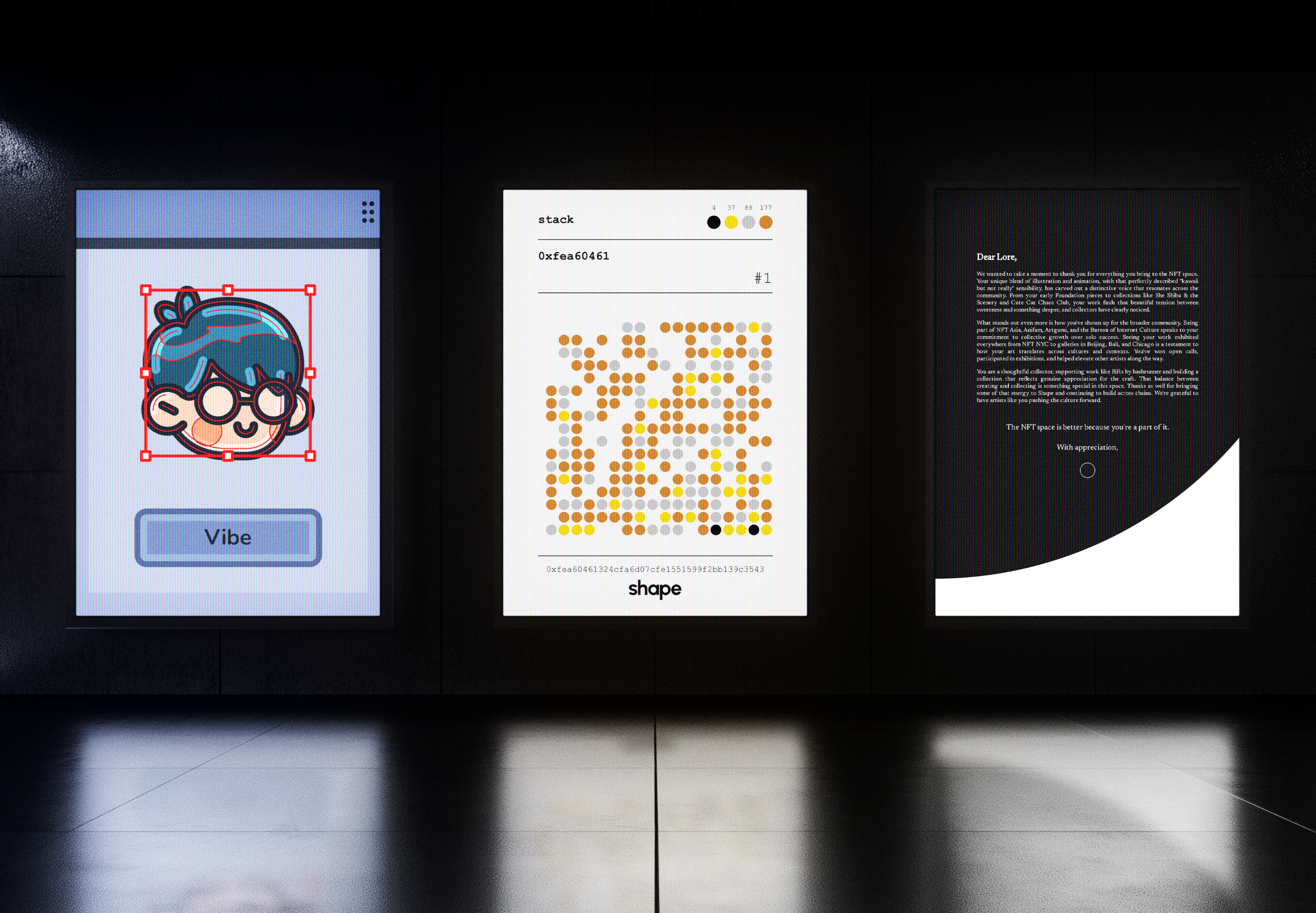 This allocation went to everyone that minted their Letter from Shape, a token of gratitude for your ongoing contribution to the space. Plus if you'd also minted a Stack, your allocation was doubled.